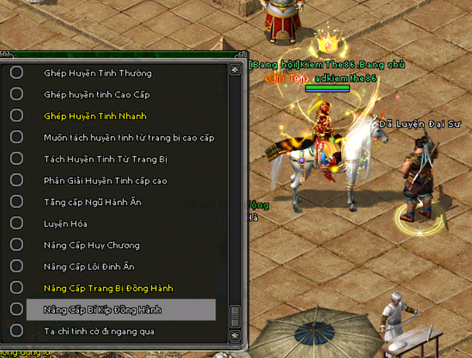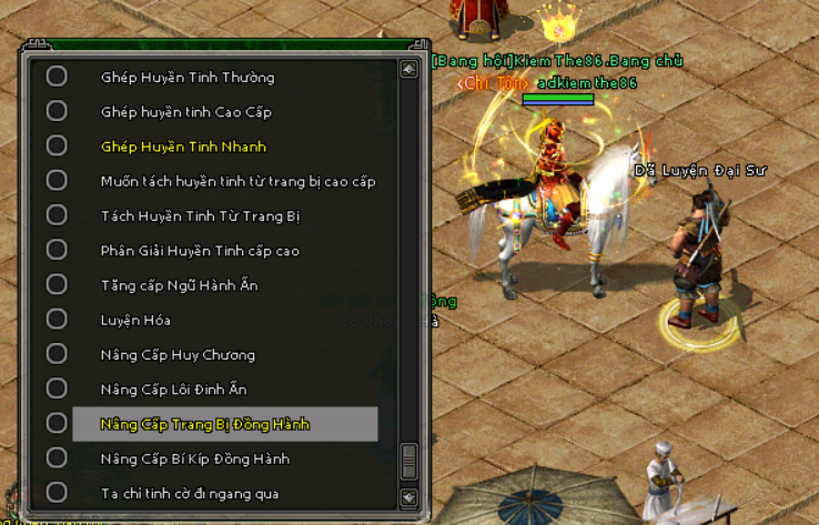 - Đến NPC Dã Luyện Đại Sư để nâng cấp trang bị Đồng Hành