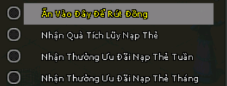 - Nhận thông qua Túi Tân Thủ, phần Rút đồng nạp Thẻ chọn tiếp Nhận quà Tích Lũy Nạp Thẻ